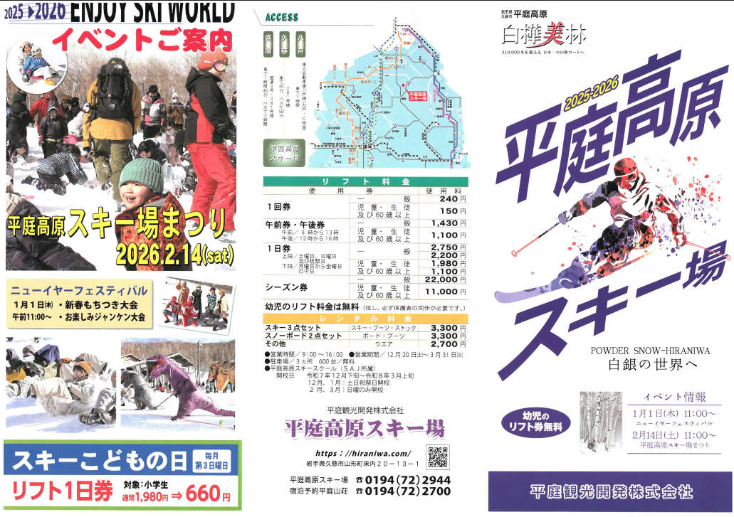 今年度の平庭高原スキー場のイベント情報