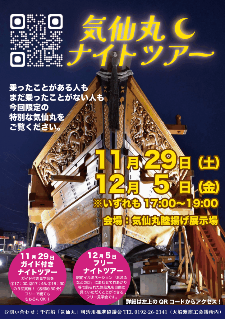 気仙丸で11月29日、12月5日に夜間限定の特別バージョン「気仙丸ナイトツアー」を開催します!