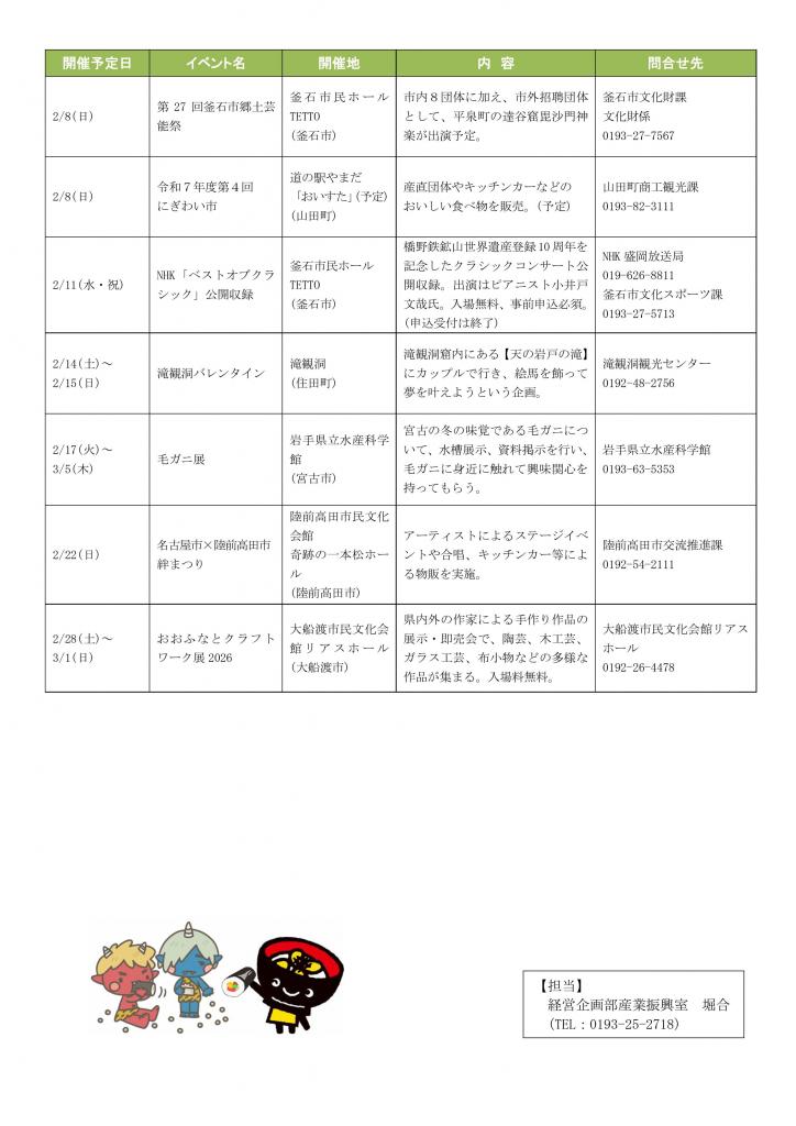 【沿岸地域】2月の観光・イベント情報