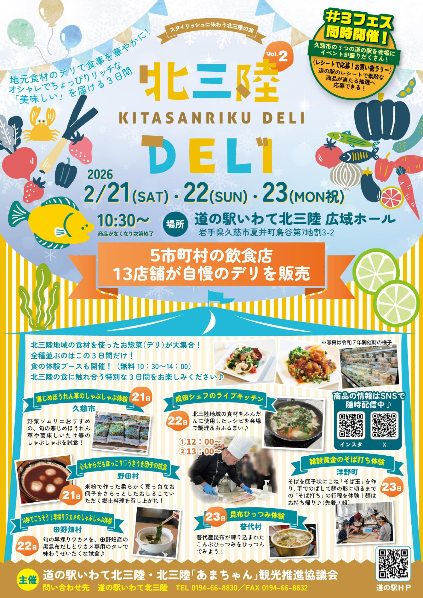 北三陸地域(洋野町・久慈市・野田村・普代村・田野畑村)の特産品を使用し、北三陸地域の飲食店の協力により食材の美味しさを最大限引き出したお惣菜(デリ)を3日間販売します!