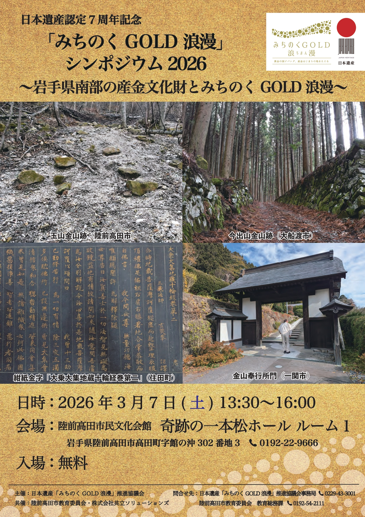 3月7日】「みちのくGOLD浪漫」シンポジウム2026が開催されます。<陸前高田市>