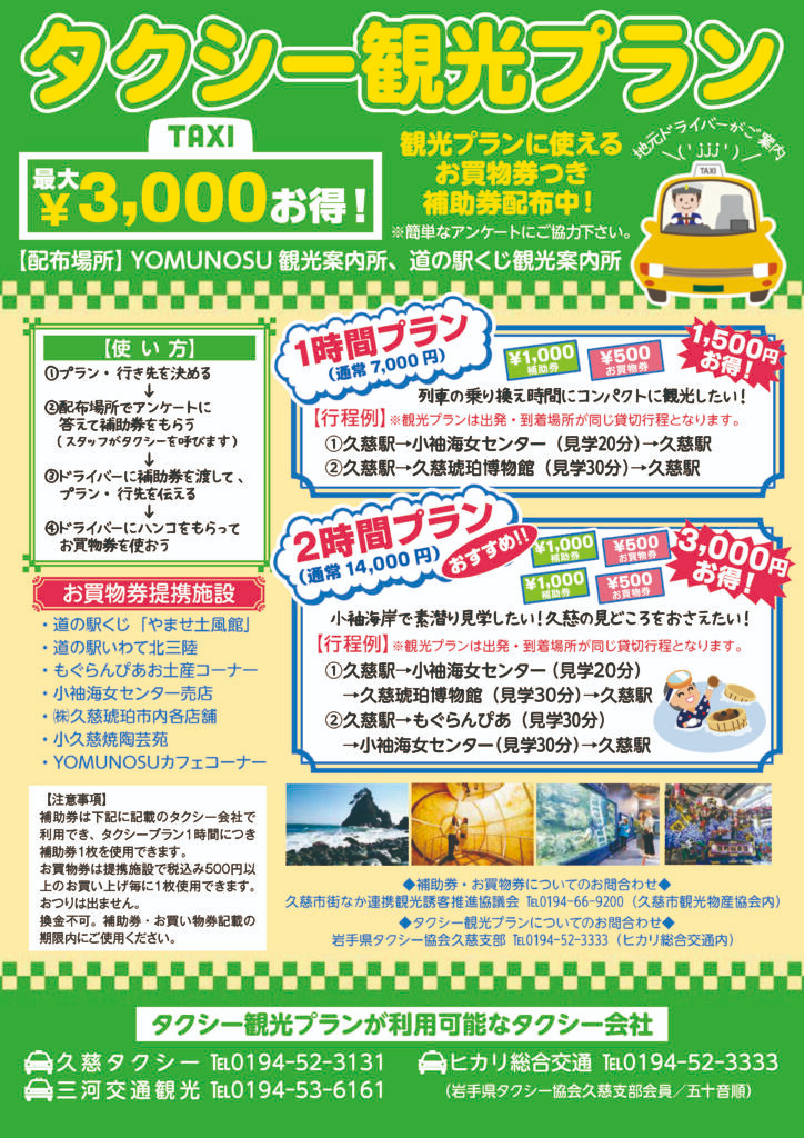 令和8年度タクシー観光プラン補助券配布について<久慈市>