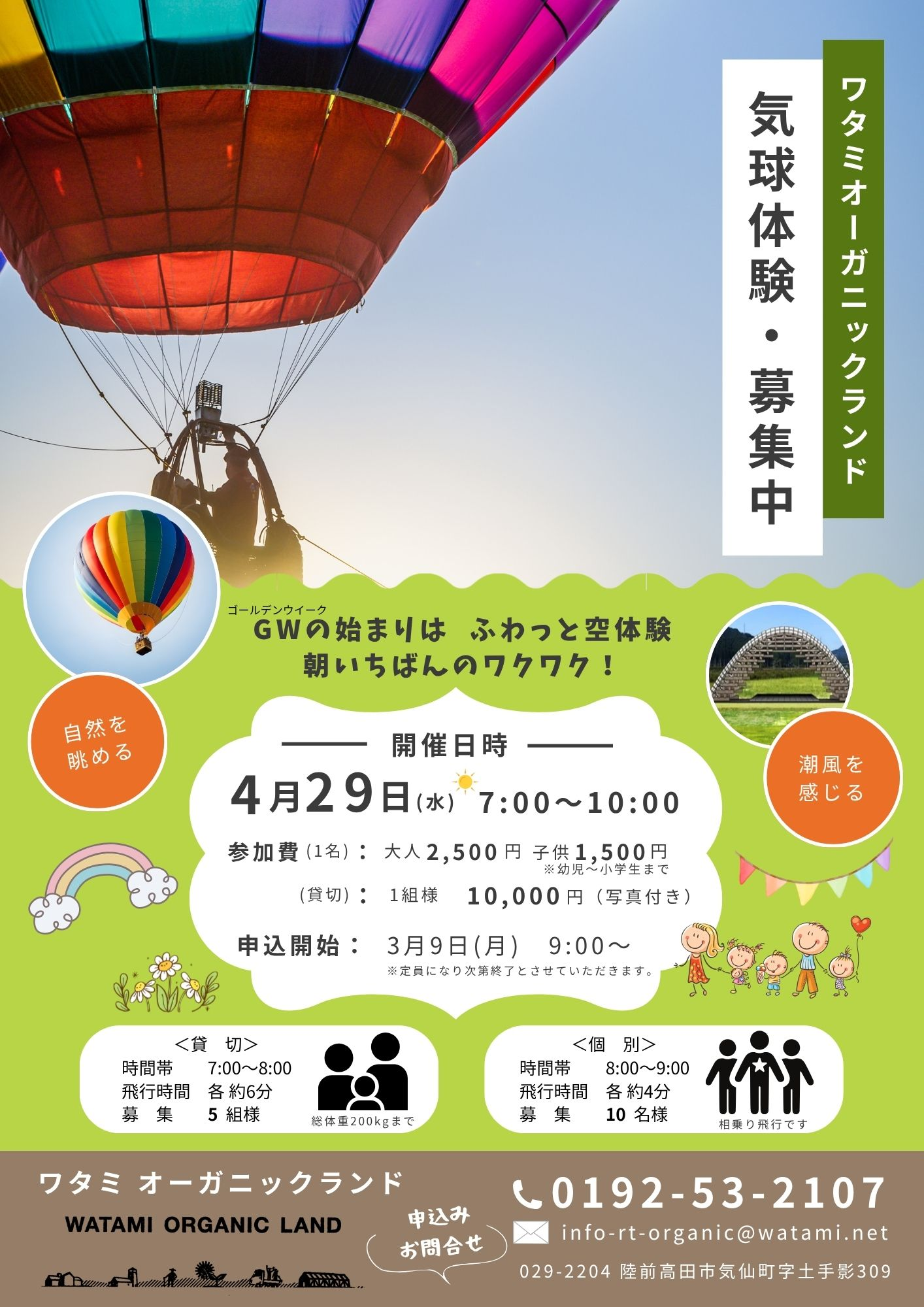 【4/29開催】ワタミオーガニックランド気球搭乗体験<陸前高田市>